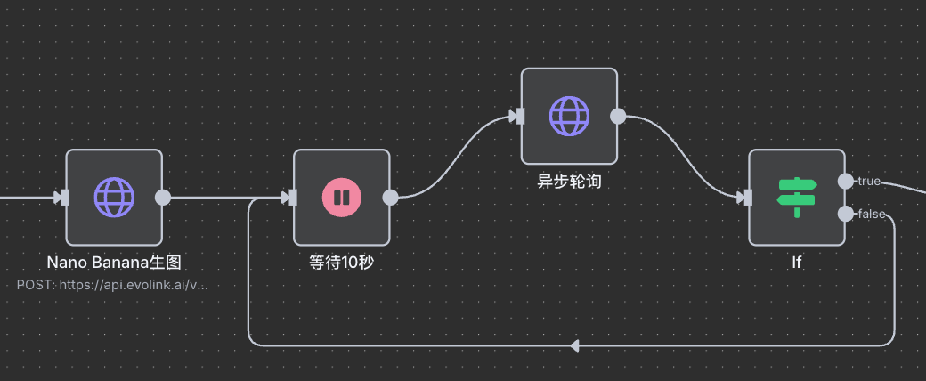 - True (完成):连向后续节点(如下载图片、发通知)。