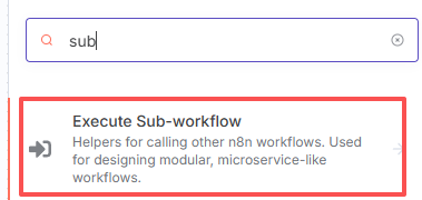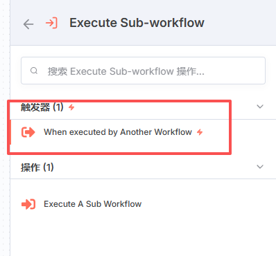 - 添加触发器:首先,在 n8n 画布空白处点击 “+”,在右侧添加节点处搜索 “sub”,找到 Execute Sub-workflow 并添加。